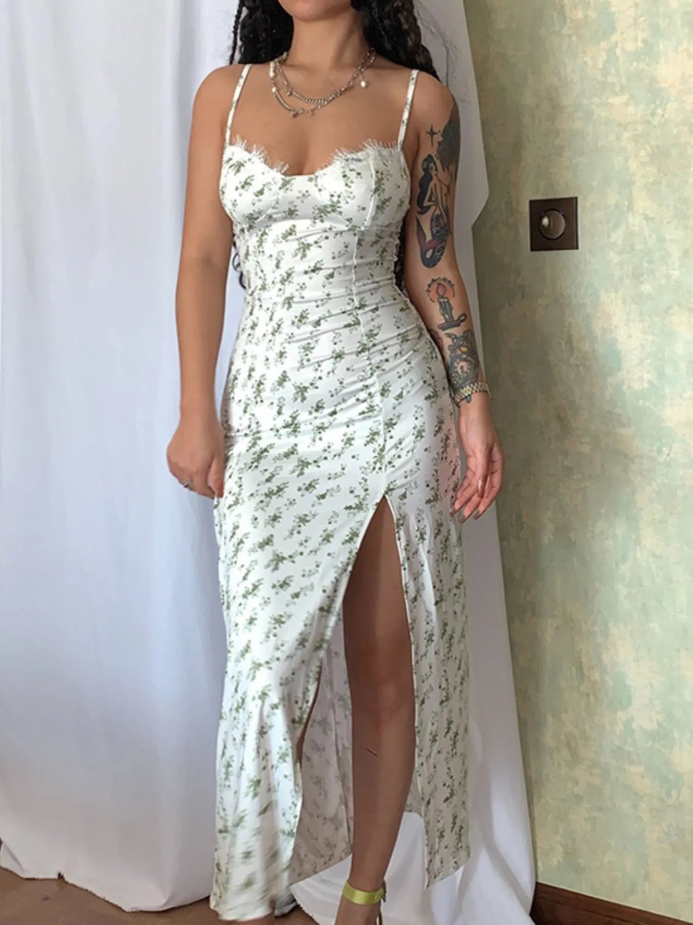 • Features: Slit, Lace Detail