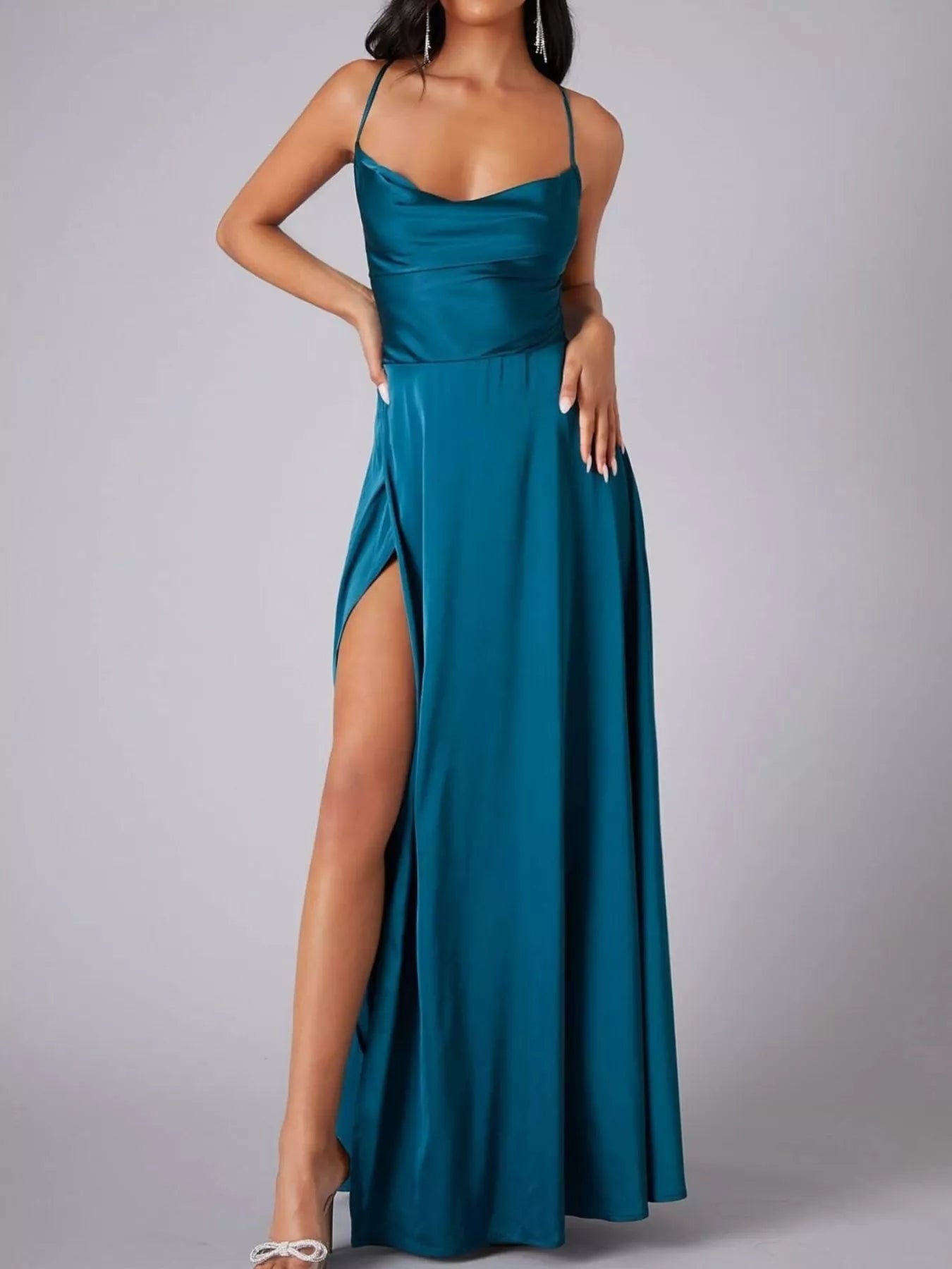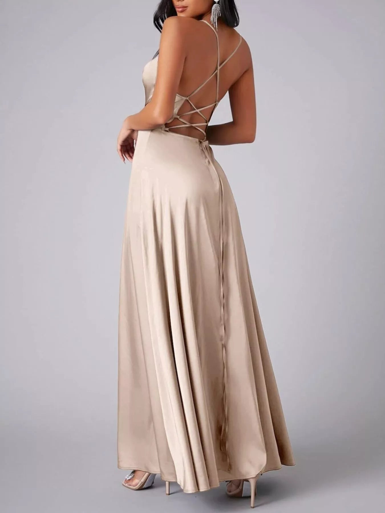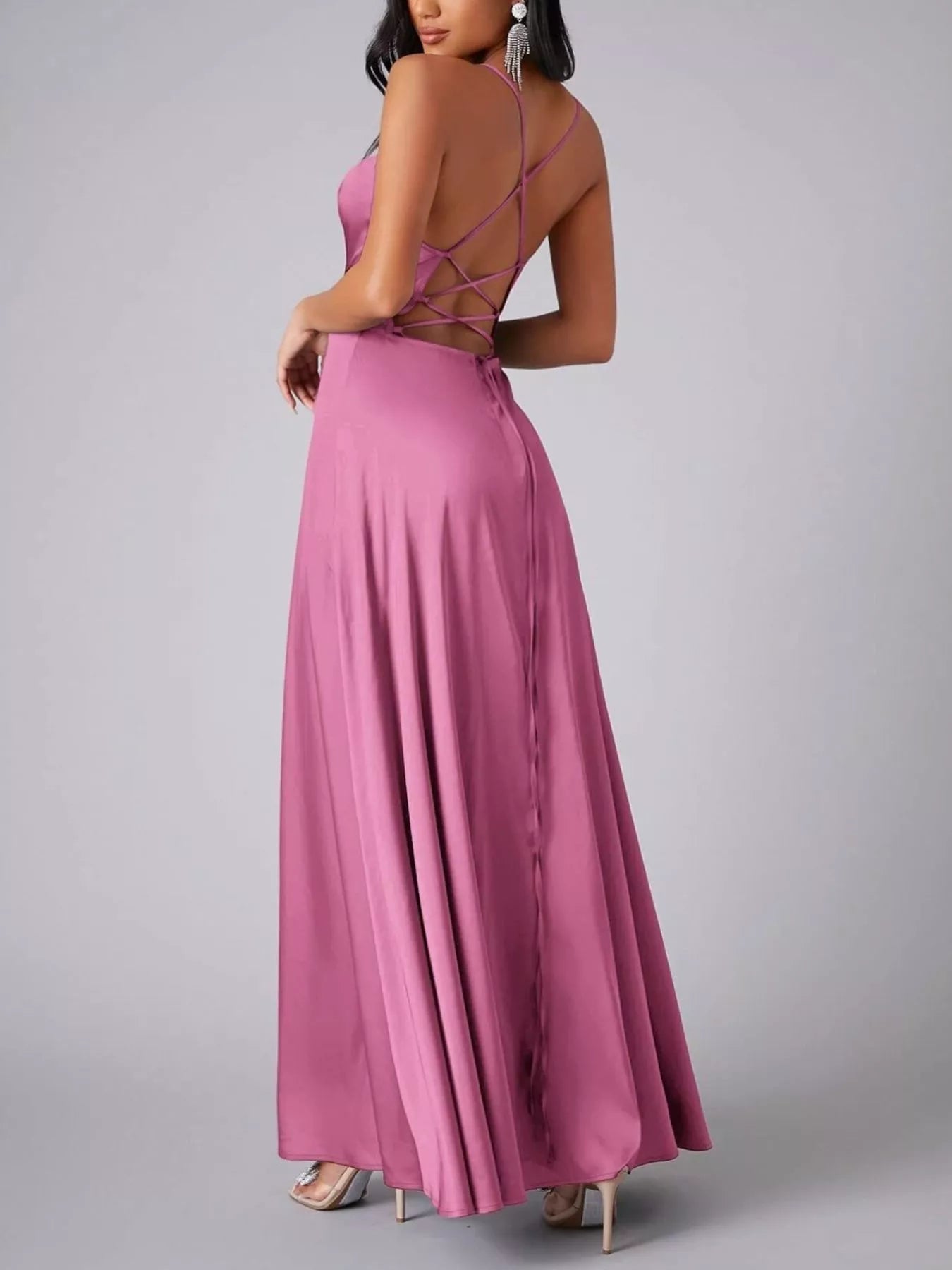 Lace Up Back Split Maxi Dress