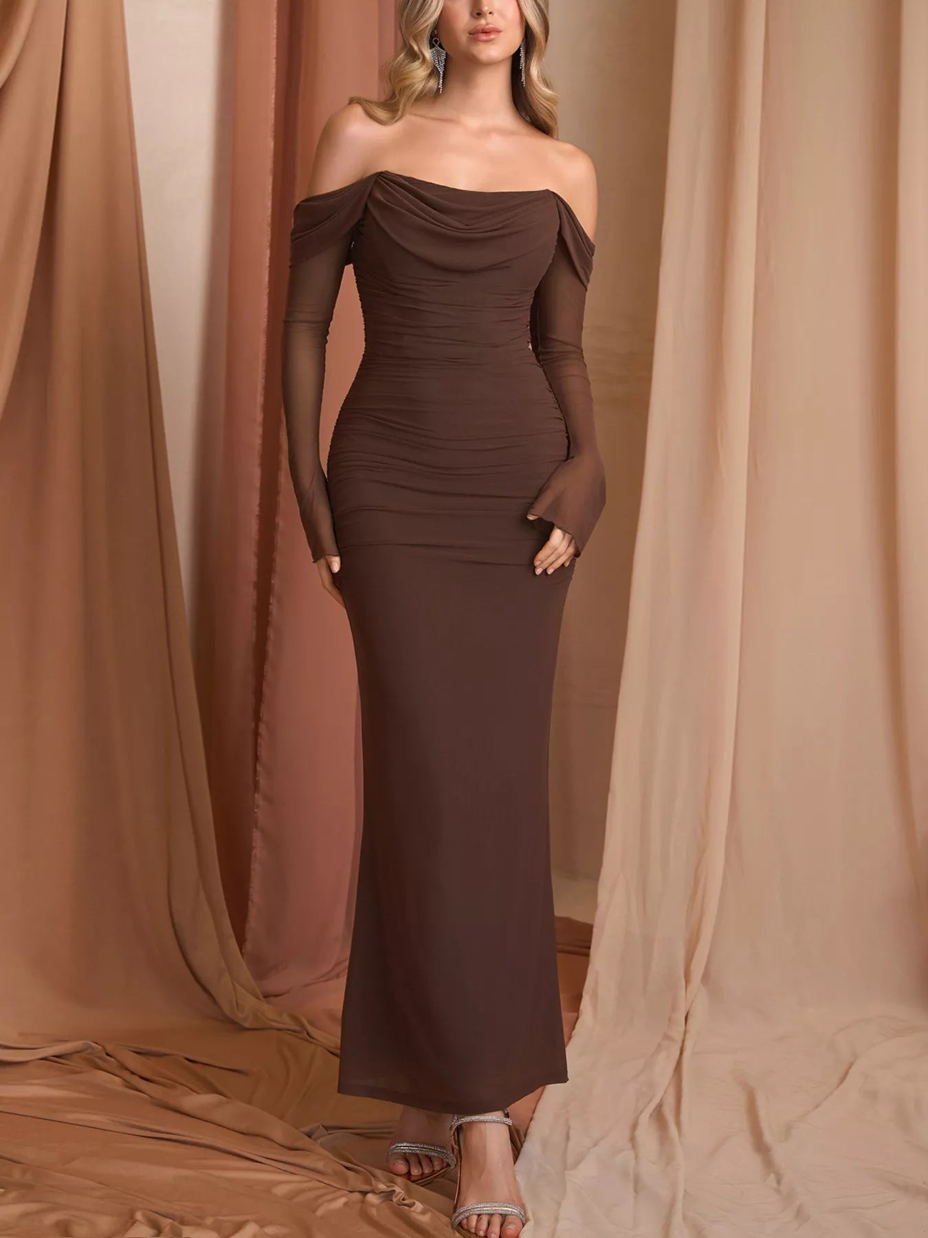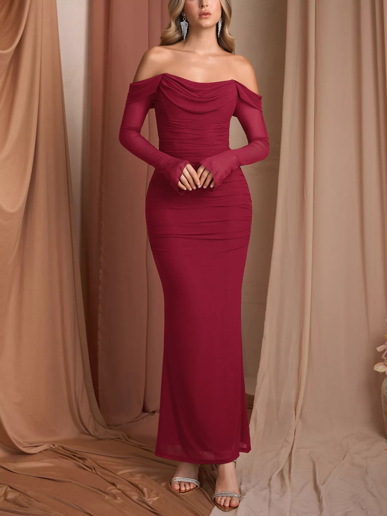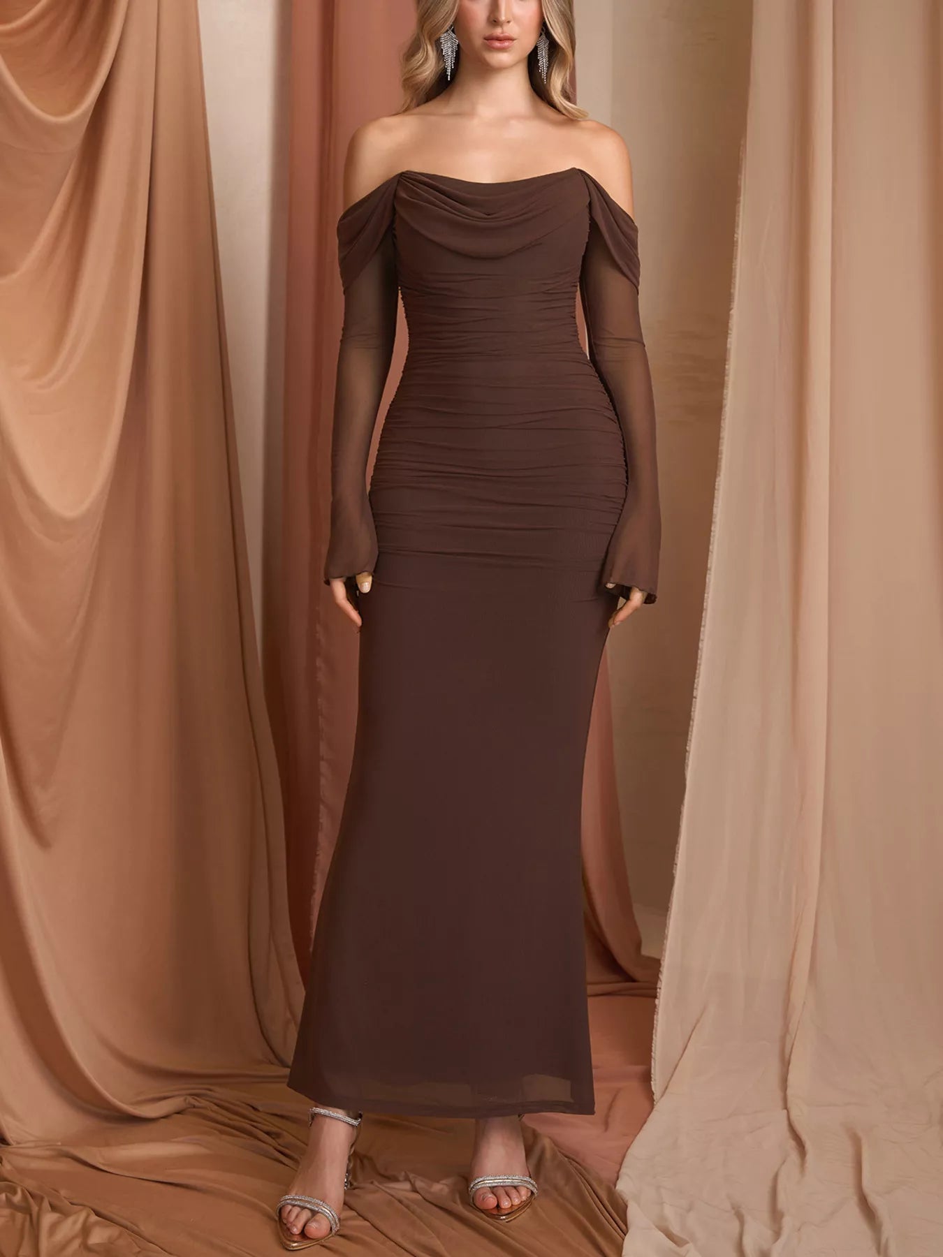 Off-Shoulder Ruched Mermaid Maxi Dress