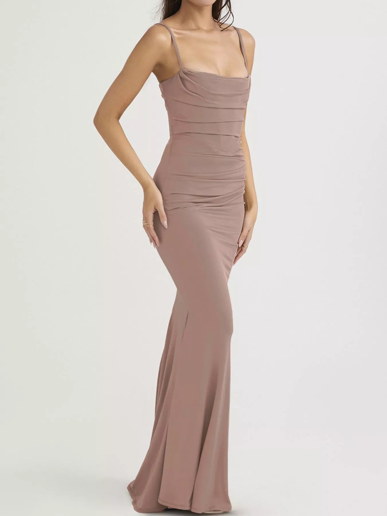 Ruched Spaghetti Strap Bodycon Maxi Dress
